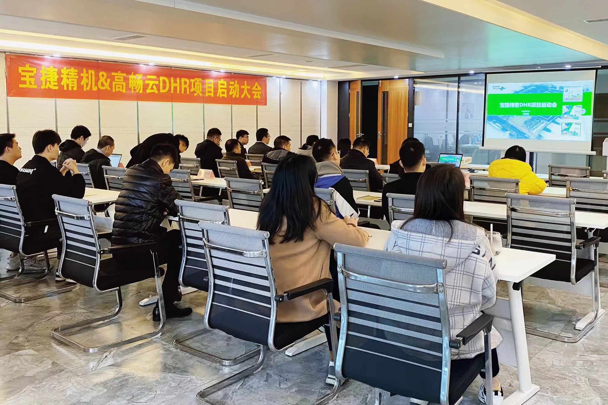 12月5日,人力资源管理系统DHR项目启动大会在三楼会议室顺利举行,宝捷各一级部门领导、高畅云科技有限责任公司顾问团队参与会议。