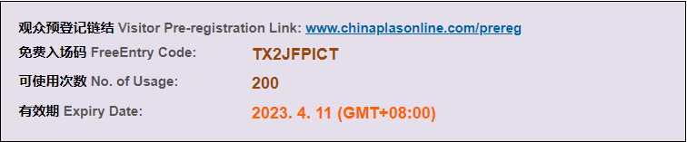 【概要描述】免费领取CHINAPLAS2023深圳国际橡塑展入场码