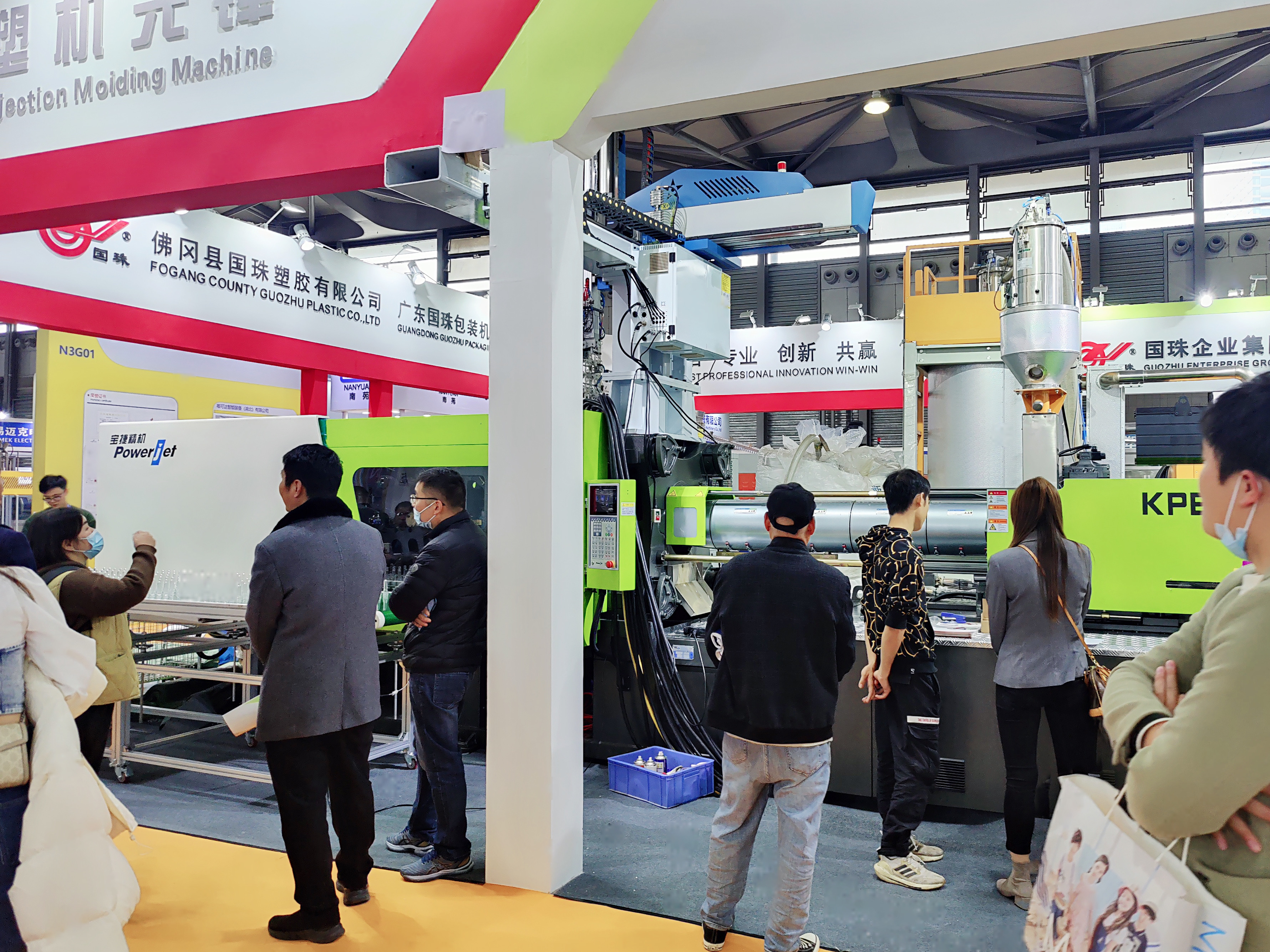 本次展会,宝捷联动广东国珠模具科技有限公司共同参展,展台位于3F01。宝捷亮相的是小高速瓶坯专用注塑机——KPET3105L-E6,现场动态演示打制水瓶坯,吸引众多专业观众驻足观看和前往洽谈区作进一步咨询。