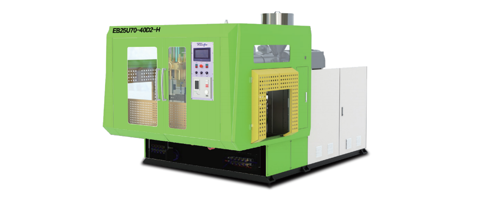EB系列全自动挤出吹瓶机与同等螺杆机型相比,机台总功率小、能耗低。另外,机台重心较矮、移模使用减速阀刹车,能相对快且平稳的进行机台动作,产能更高效。