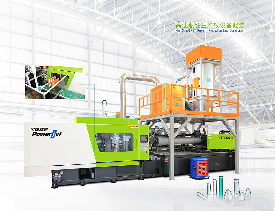 宝捷公司自2000年成立以来,始终专注于节能、高效、精密、稳定为核心的注塑设备,也是业内较早涉足高速PET瓶坯领域的专用机器制造商。经过多年的努力,我司在全国PET专用注塑机领域享有卓越地位,占据着领先的市场份额。目前已拥有PET专用机型注射量从800g-6,000g的完备产品线,从主机更多选择,到模具、机械手以及干燥系统等辅助设备的完善配套,提供给不同产量需求的客户贴心的服务,为全方位满足PET瓶坯注塑这一专业细分市场而提供成熟的解决方案。