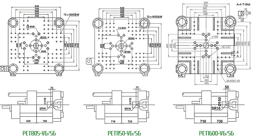 多组抽芯位置,方便安装;带热流道控制接口,适应不同的模具。